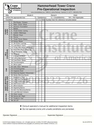 Tower Crane Checklists for OSHA required Pre-Operational Inspections.